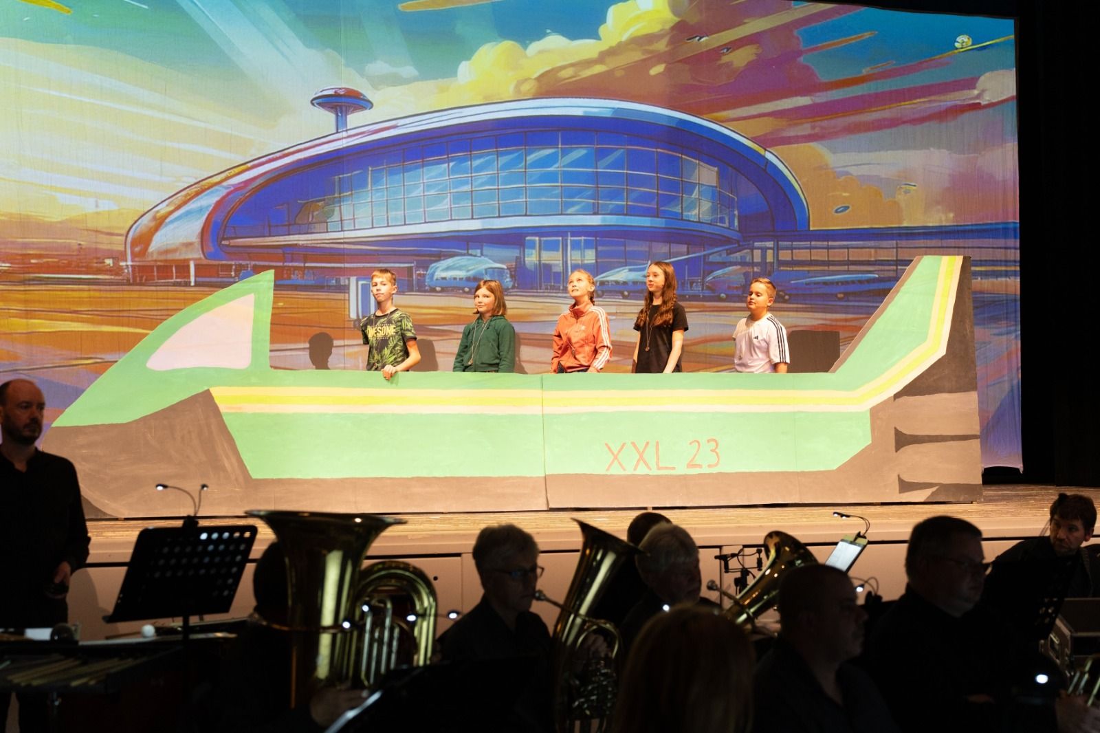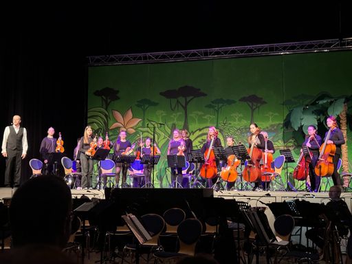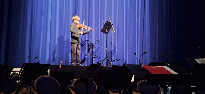 Im Vorprogramm waren die Früherziehung, Streicherklasse, Bläserklasse, das Projektorchester mit Gesangseinlage und der junge Geiger Leopold Andersons mit einem Geigensolo zu sehen.