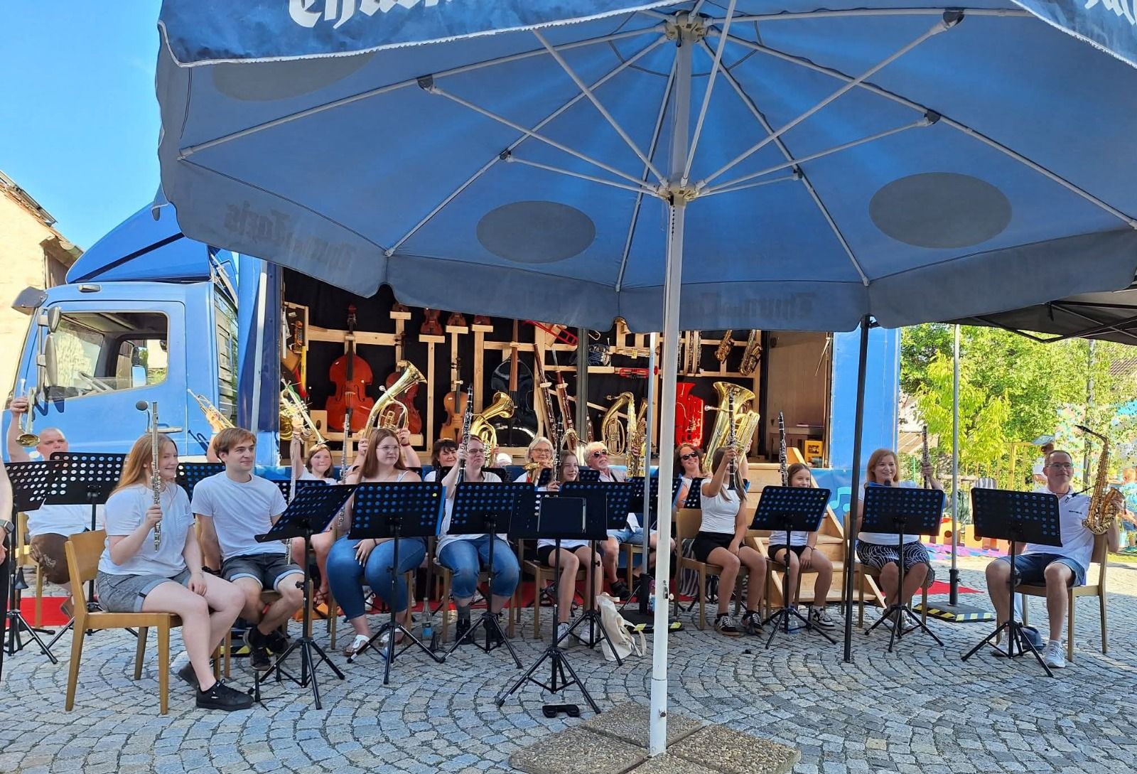 Vorab und im Anschluss konnte man an unserem Kirwa-Stand verschiedene Früherziehungs-, Blas-, Streich- und Naturton-Instrumente ausprobieren und sich über die Aktionen des Vereins informieren.