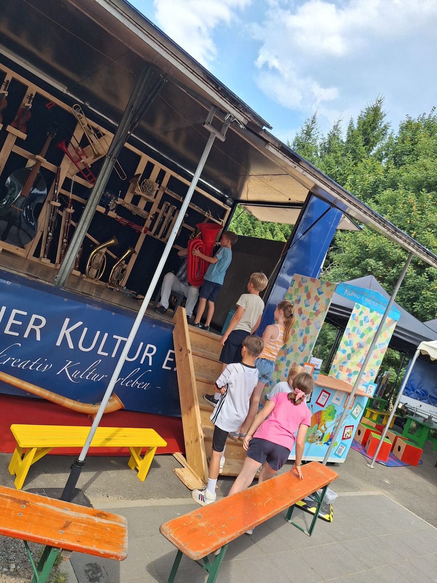 Hole dir Musik und Kunst vor die eigene Haustüre und buche unseren Mobilen Kultur Kiosk. Für Familien, Vereine, Schulen, Firmen - einfach für alle Musikinteressierten und alle die es werden wollen.