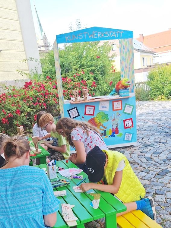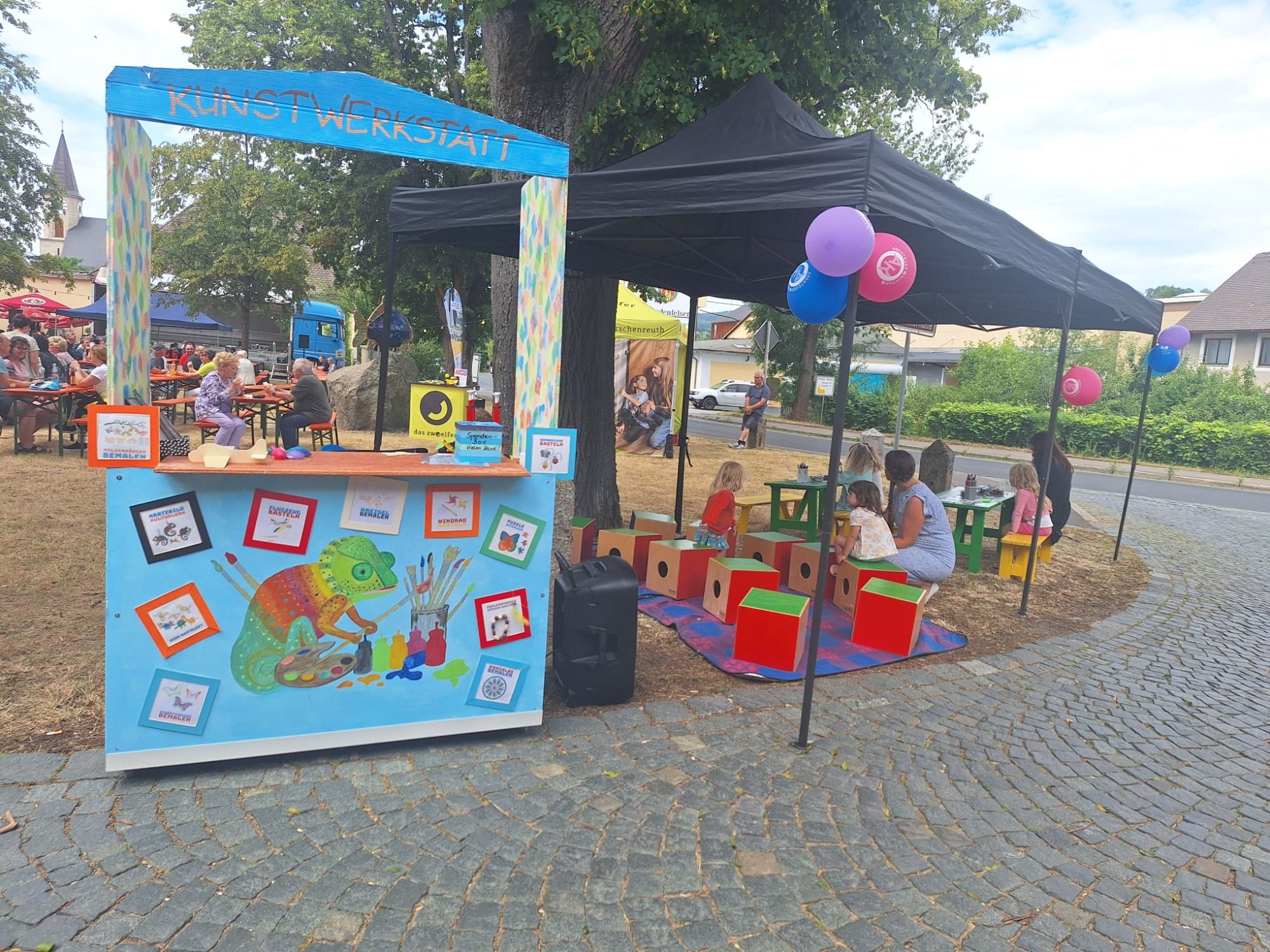 Mit dabei unsere Kunstwerkstatt und das Kamishibai-Mini-Theater.