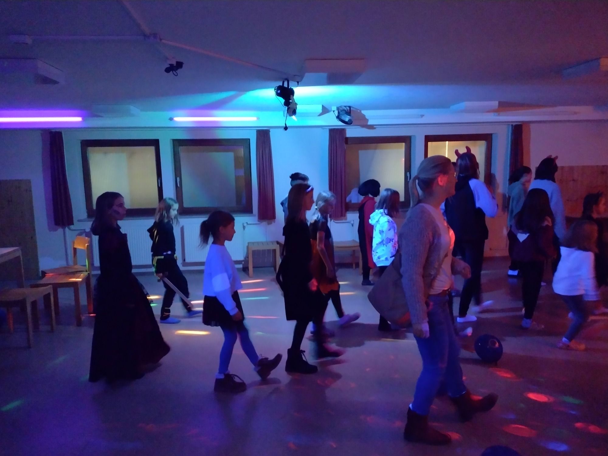 Nach der Stunde zogen die Kinder fröhlich zum Süßes-oder-Saures weiter. 🎃