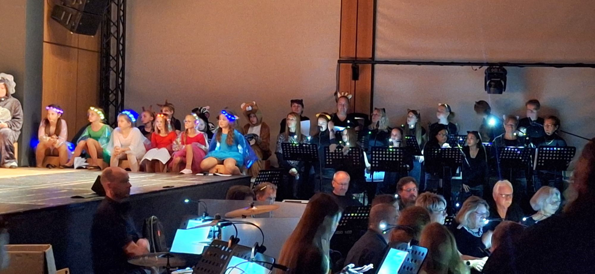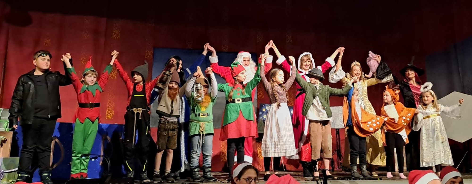 Ein buntes Vorprogramm von "Klein bis Groß" sorgte mit einer Früherziehungseinheit, einem Bläser- und Streichensemble und einer lustigen Moderation mit dem "Kulteleon", einem kleinen frechen Chamäleon, für gute Unterhaltung. Auch der Zitherclub verzauberte bei der 2. Vorstellung das Publikum mit weihnachtlichen Klängen.