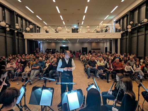 Das eigens von Pascal Hahn für Blasorchester, Solisten und Chor arrangierte Werk versetzte alle Besucher in Weihnachtsstimmung.