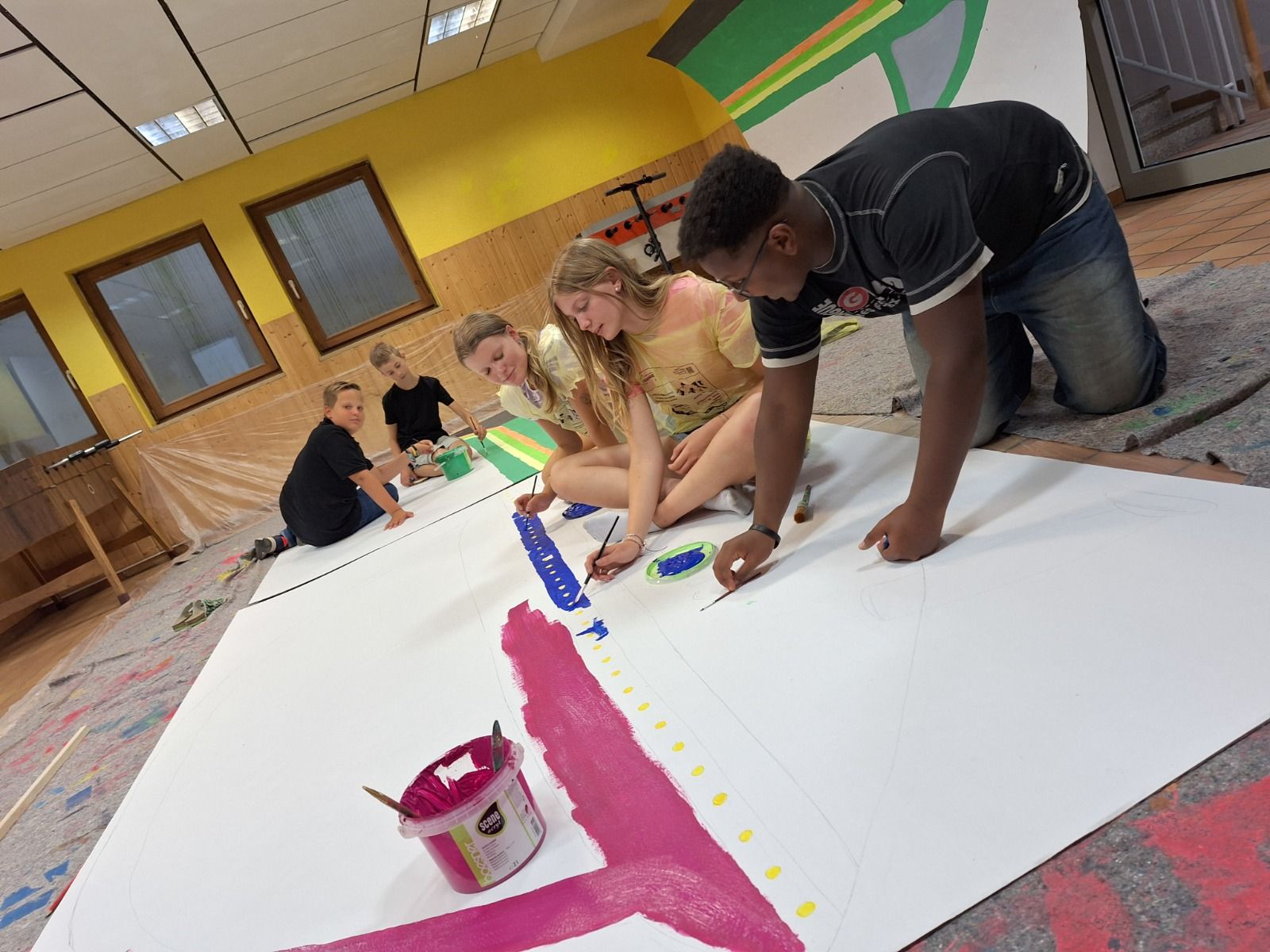 Für unsere Wanderkunst-Ausstellung wurde von Kindern und Jugendlichen an mehreren Workshop-Tagen unter fachlicher Anleitung verschiedene Techniken ausprobiert und fleißig gemalt, gesprüht, gepinselt und gerollt.