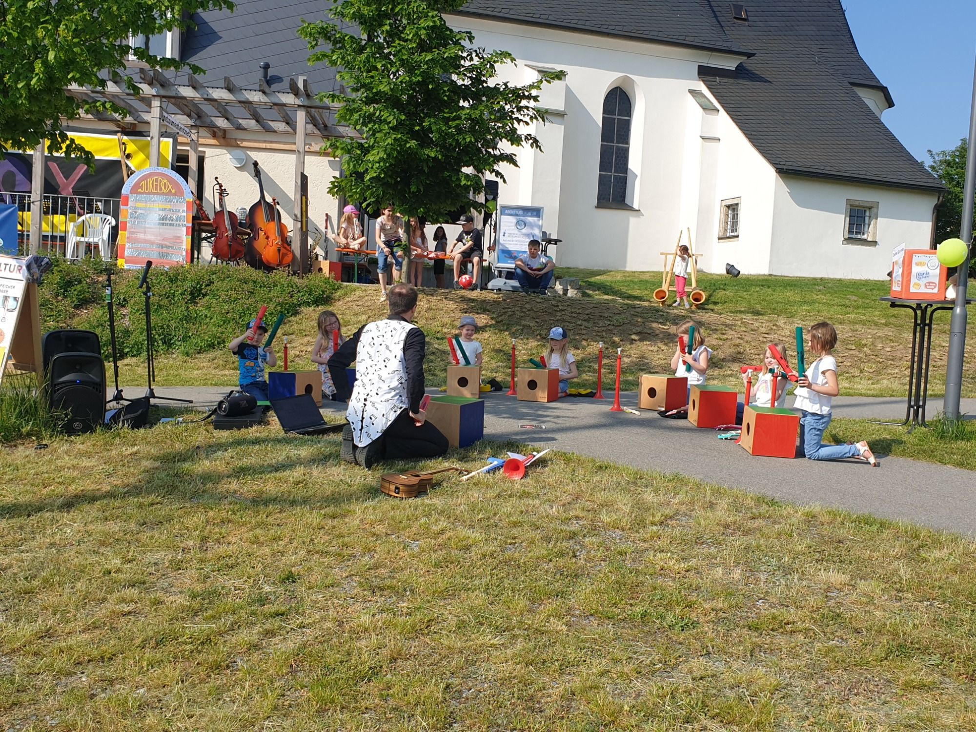 Hole dir Musik und Kunst vor die eigene Haustüre und buche unseren Mobilen Kultur Kiosk. Für Familien, Vereine, Schulen, Firmen - einfach für alle Musikinteressierten und alle die es werden wollen.