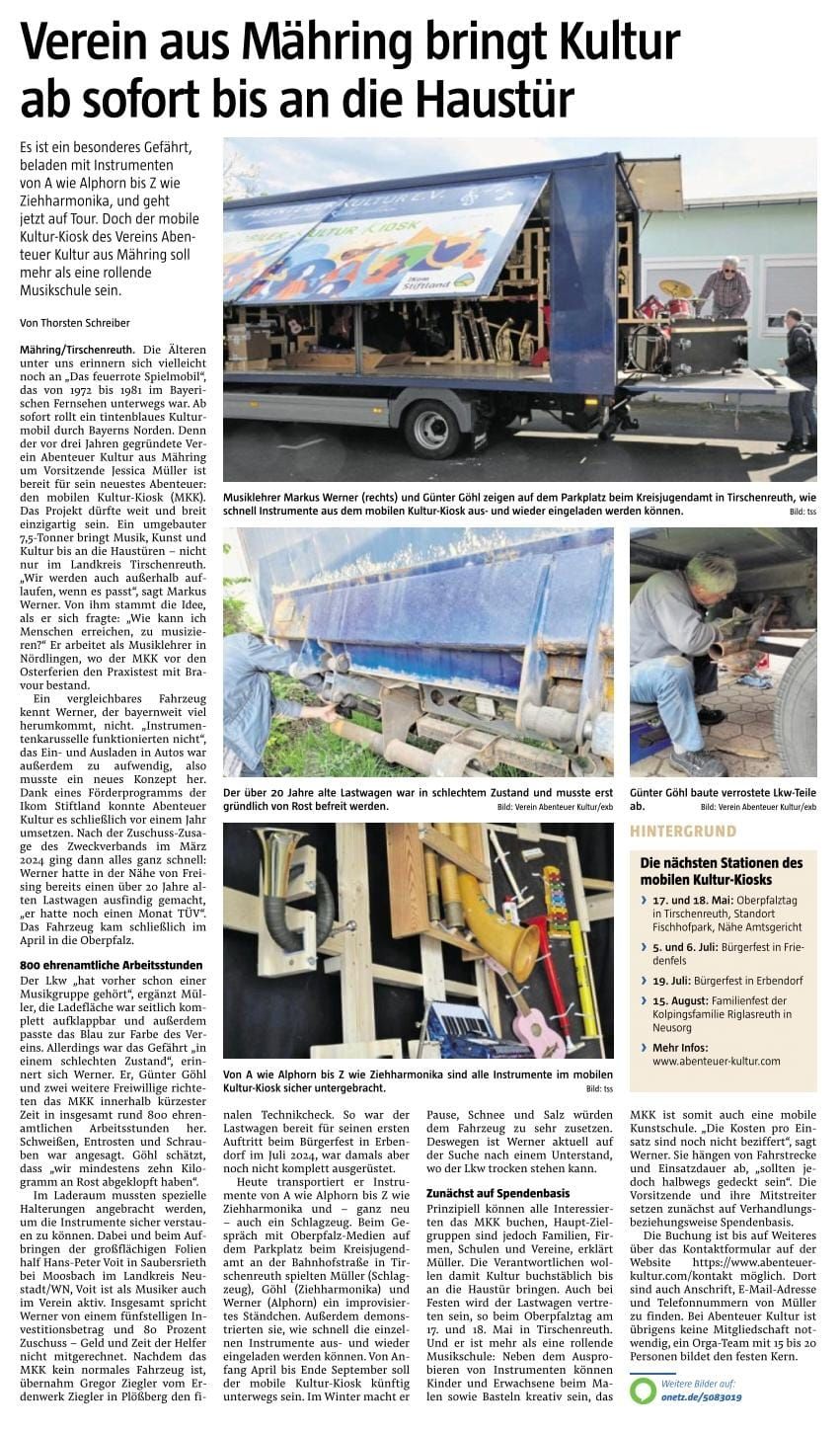 Ein bisschen nervös waren wir zugegebenermaßen schon, als wir unseren ersten Einsatz des mobilen Kultur Kiosks auf dem Erbendorfer Bürgerfest hatten. Die Woche zuvor wurde schnell noch ein Boden verlegt und eine Treppe angepasst, damit alle bequem ein und aussteigen können.